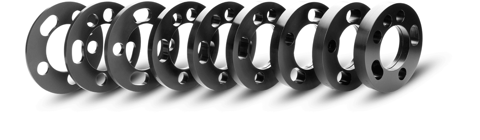 Das Durchstecksystem mit Mehrlochkreisbohrungen bildet bis zu zwölf Lochkreise ab. Dank des innovativen ST-Befestigungsmaterials ist das DZX System für Fahrzeuge mit Radschrauben und Radbolzen geeignet. In Kombination mit unseren patentierten Adpaterringen kannst Du in präzisen 2,5-mm-Schritten die Spur von 5 – 25 mm pro Rad verbreitern.